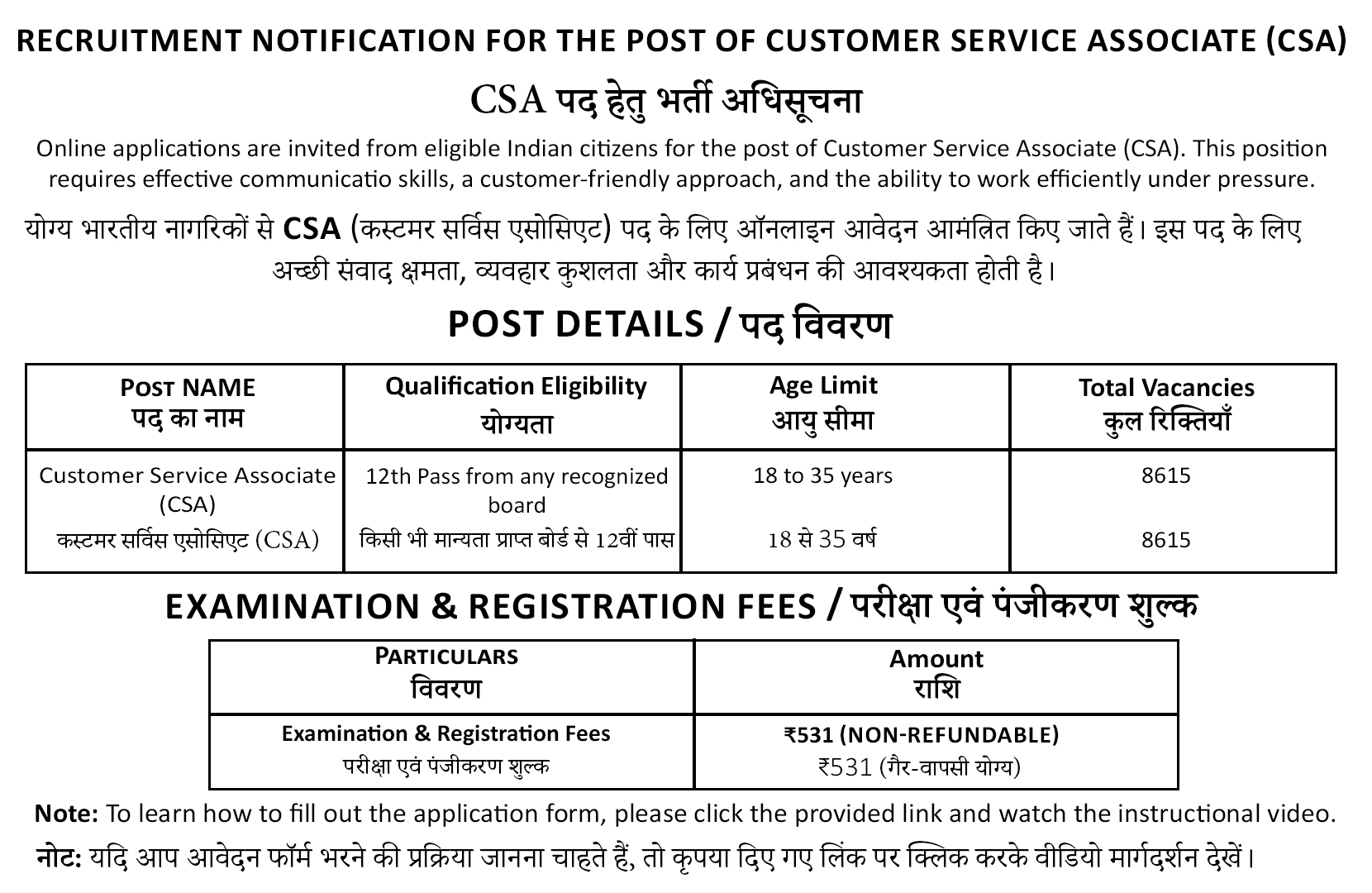 Customer Service Associate(CSA)
